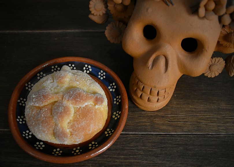 Su origen también se asocia a la costumbre azteca de ofrecer doncellas en sacrificio a los dioses y colocar su corazón en un recipiente con amaranto, para después ser comido por la persona que presidia el rito, o en su defecto, mezclar la sangre del sacrificio con amaranto molido para elaborar un pan que se ofrecía a los dioses. Se dice que los españoles rechazaron estos sacrificios y elaboraron un pan de trigo (recordemos que el trigo llegó junto con ellos), en forma de corazón cubierto de azúcar pintada de rojo, para simular la sangre de la doncella. Con el paso del tiempo, el pan de muerto sufrió cambios y adaptaciones hasta llegar a ser como lo conocemos ahora, dando lugar a muchas variedades (se rumora que alrededor de 800), que encontramos en cada rincón del país, variedad de formas, pudiendo ser antropomorfos (figura humana), mitomorfos (personajes mitológicos), fitomorfos (flores y hojas) y zoomorfos (animales); variedad de colores: con azúcar blanca, rosa, ajonjolí o decorados con alfeñique; variedad de sabores: naranja, azahar, canela, vainilla, anís… e incluso nombres.