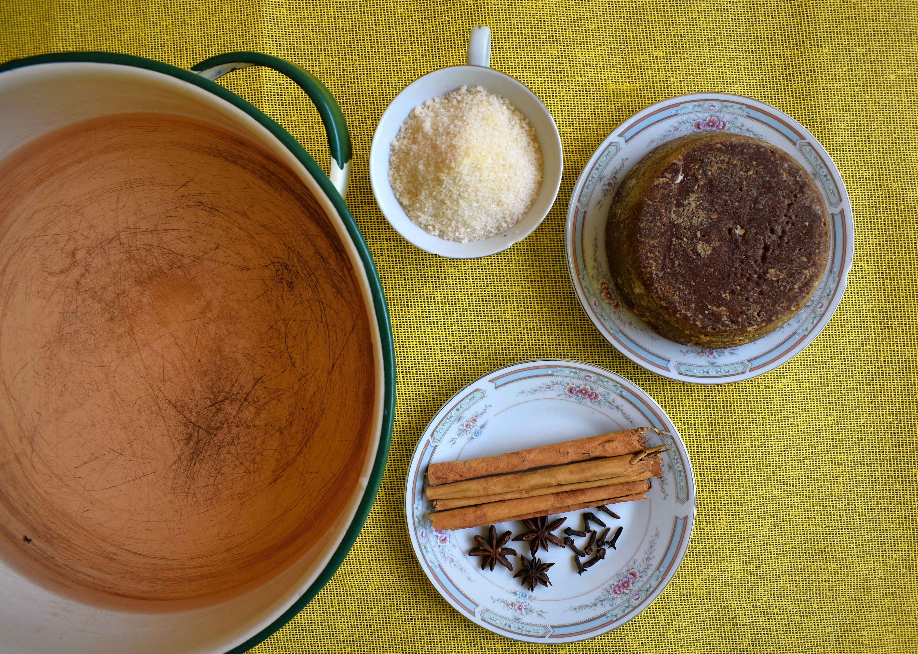 - Mientras los tejocotes se enfrían, en la olla con el agua agrega el azúcar, piloncillo, canela, clavos y anís, luego lleva la olla a cocción a fuego medio para hacer el almíbar.