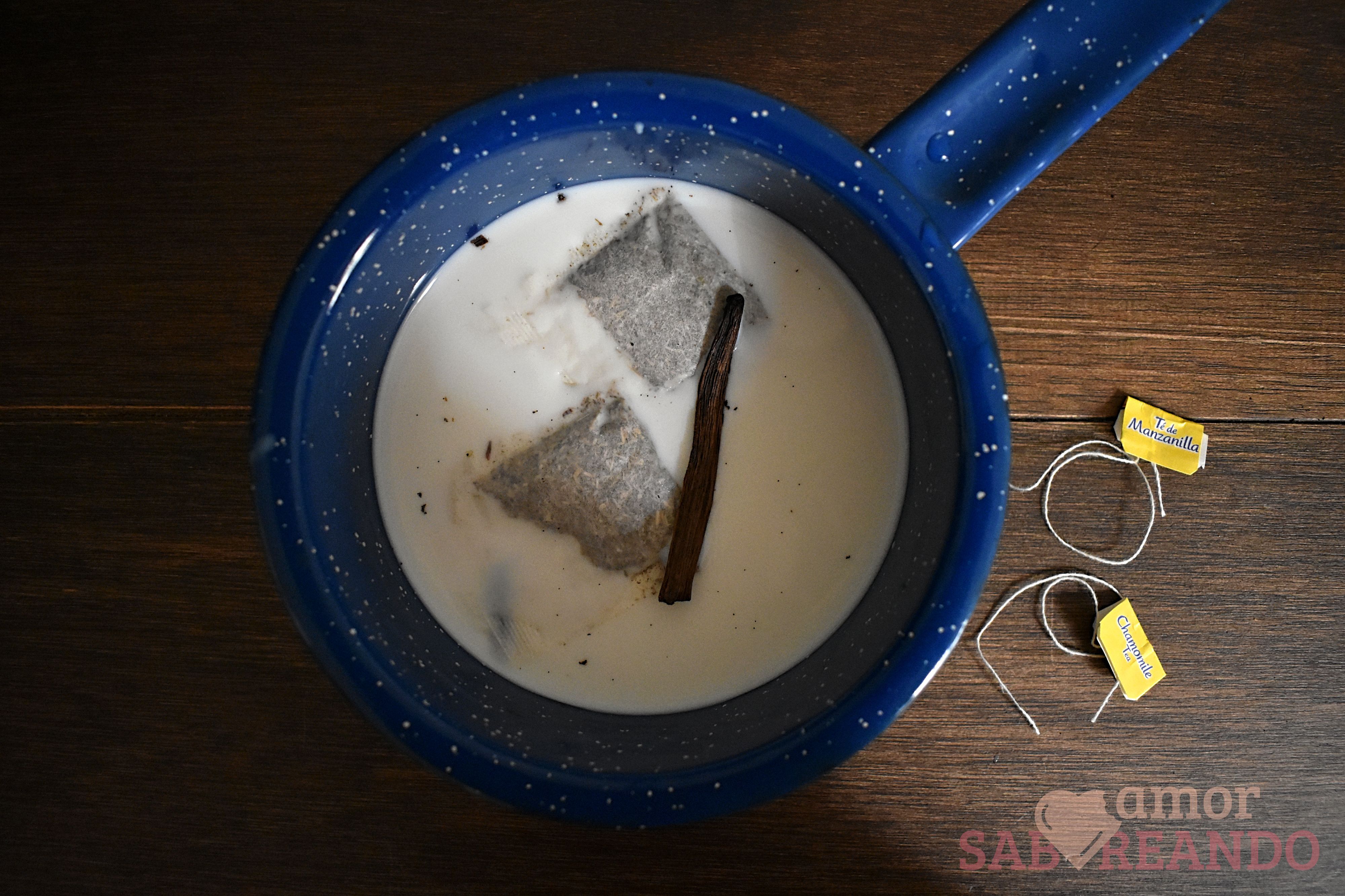 Después de esa breve nota aclaratoria y retomando una curiosidad que tenía desde niña y nuca resolví (remojar la bolsita de té de manzanilla en leche caliente en lugar de agua caliente), decidí preparar este manzanilla latte ¡Manos a la obra!