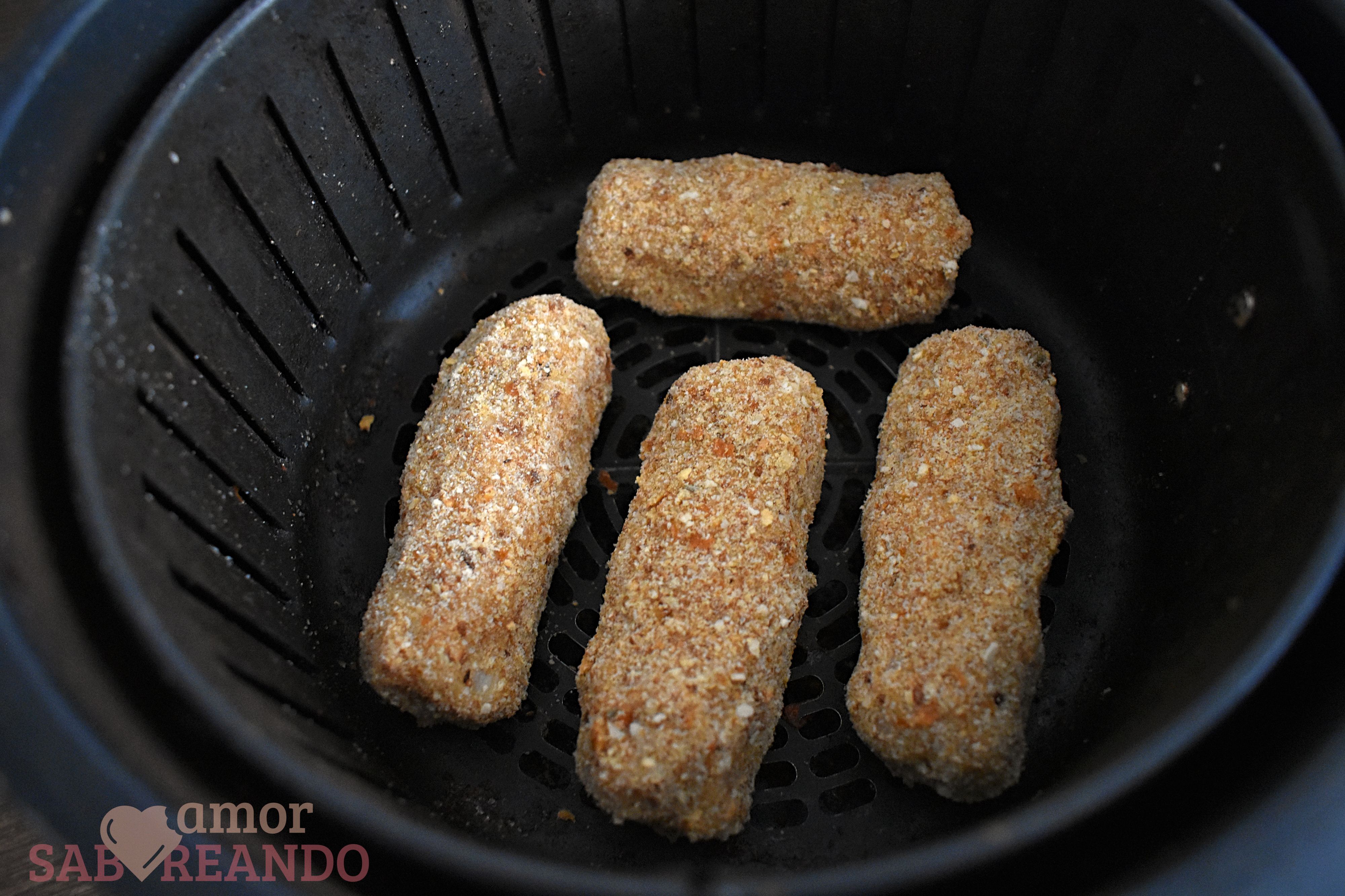 - Puedes freírlas en un sartén con aceite caliente, hornearlas en horno precalentado a 180° durante 20-25 minutos o cocinarlas en freidora de aire con un poco de aceite en aerosol durante 20 minutos a 180°C y 5 minutos en máxima potencia para que queden bien doraditas. Yo las cocine en freidora de aire, la verdad es de mis electrodomésticos favoritos; es fácil de usar, muy práctica y me ahorro miles de calorías, la mía ha salido muy buena, la tengo desde el 2016. Te comparto el link al final, también te dejaré el dato del recipiente que uso para pulverizar el aceite.