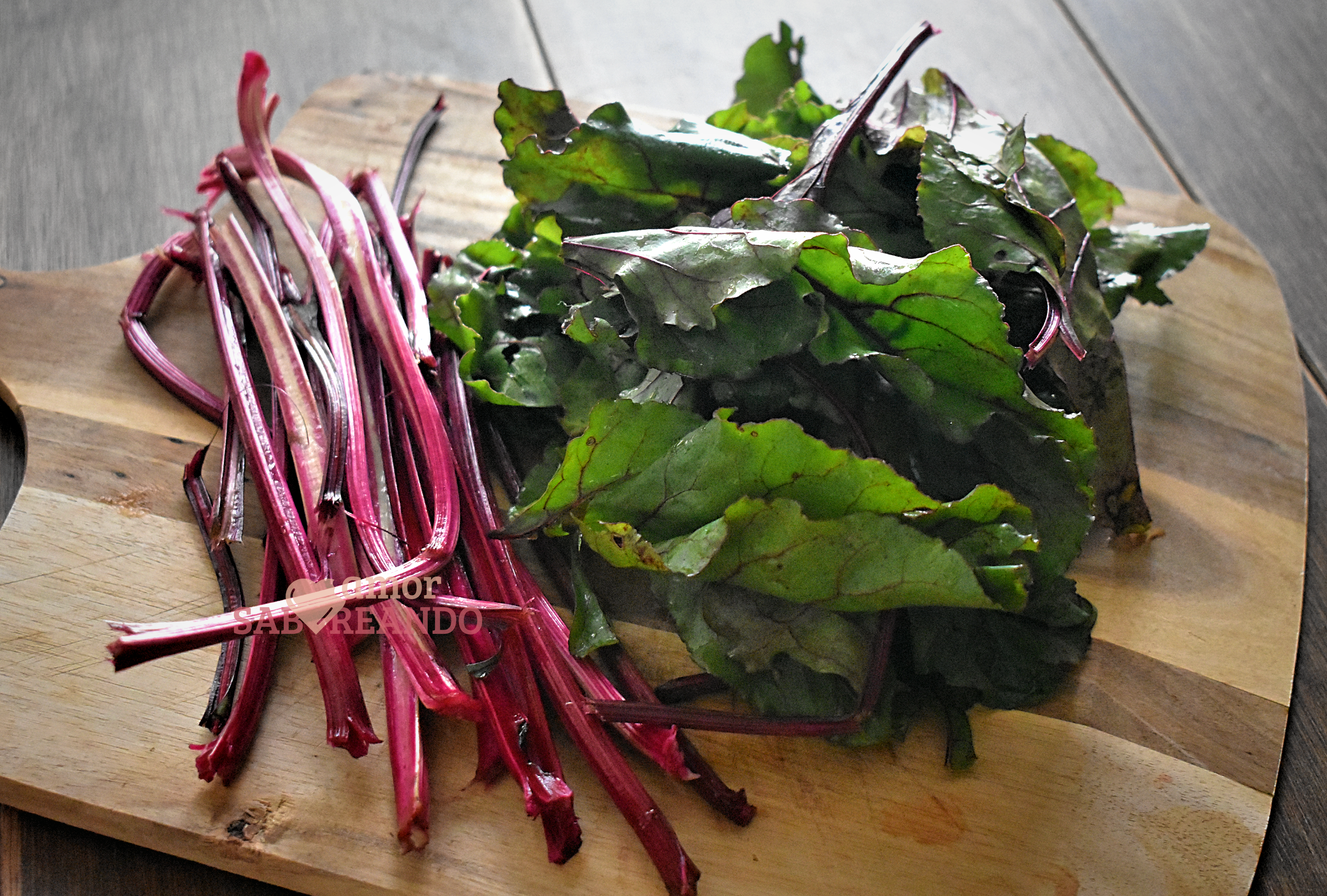Hace unas semanas mi hermana mi invitó a la feria de las culturas que realizan en su universidad donde encontramos stands de todos los estados vendiendo sus hermosas artesanías y productos típicos de su región, así como venta de hortalizas, frutas y verduras de productores locales, donde adquirí, entre otras cosas, unos hermosos y frescos betabeles producidos de manera sustentable y ecológica. Obviamente tenía que aprovechar los preciosos tallos y hojas de alguna manera y fue así que se me ocurrió esta receta. ¡Manos a la obra!