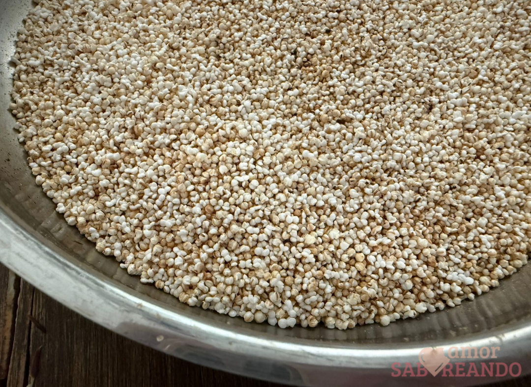 Sabrás que el amaranto está listo cuando su color se haya vuelto ligeramente más tostado, pero, sobre todo, que al probarlo ya se sienta crocante. Una vez listo retira del fuego y pásalo a otro recipiente para que se enfríe (si lo dejas en el comal, se va a seguir tostando y podría quemarse).